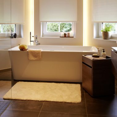 Gerade bei der Abdunklung von Schlaf- und Kinderzimmern spielt das Innenrollo eine große Rolle. Lichtundurchlässige Stoffe, wahlweise mit rückseitiger Perlexbeschichtung, erzielen sehr gute Abdunklungseigenschaften.